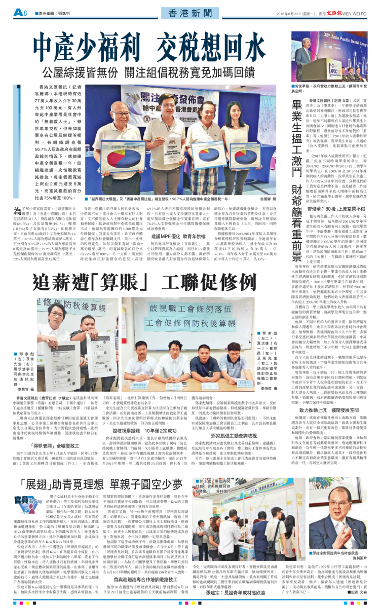 [文匯報報道] 2016-6-19大聯盟發表中產發佈會,公佈有關中產調查及報告